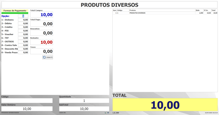 Na correria do dia a dia, cada segundo conta — e a nossa frente de caixa foi pensada exatamente para isso. Com uma interface prática e intuitiva, o operador realiza atendimentos com rapidez, finalizando vendas em poucos cliques e garantindo agilidade ao cliente no momento mais importante: a conclusão da compra. Ao final do expediente, o fechamento de caixa é completo e transparente, com relatórios detalhados de vendas, fluxo de caixa, cancelamentos, suprimentos e sangrias. Tudo pronto para ser conferido em poucos minutos, sem complicação. Um processo eficiente, seguro e com total controle para o gestor — e confiança para quem está no balcão.